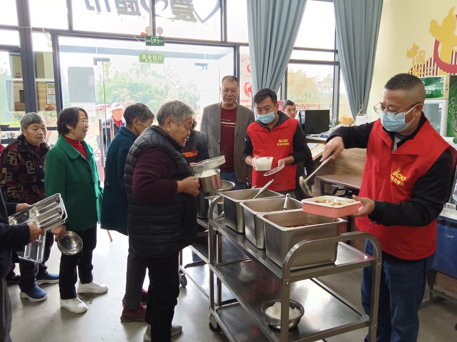 井然有序的活動現(xiàn)場,身著醒目紅色馬甲的黨員們迅速分工、密切合作,有的拿起掃帚、拖把和抹布開展衛(wèi)生清潔,從地面到墻面、從桌椅到餐具的每一個(gè)角落,為老人們營造整潔舒適的就餐環(huán)境;有的為行動不便的老年人及時(shí)送餐上門,讓他們能心情愉悅地享用美食;有的則陪伴在老人身邊與他們親切交談,關(guān)愛他們的健康與需求,傾聽他們的心聲與故事?!鞍謰屖程谩眱?nèi)忙碌穿梭的黨員身影,構(gòu)成了一幅幅溫馨動人的畫面。