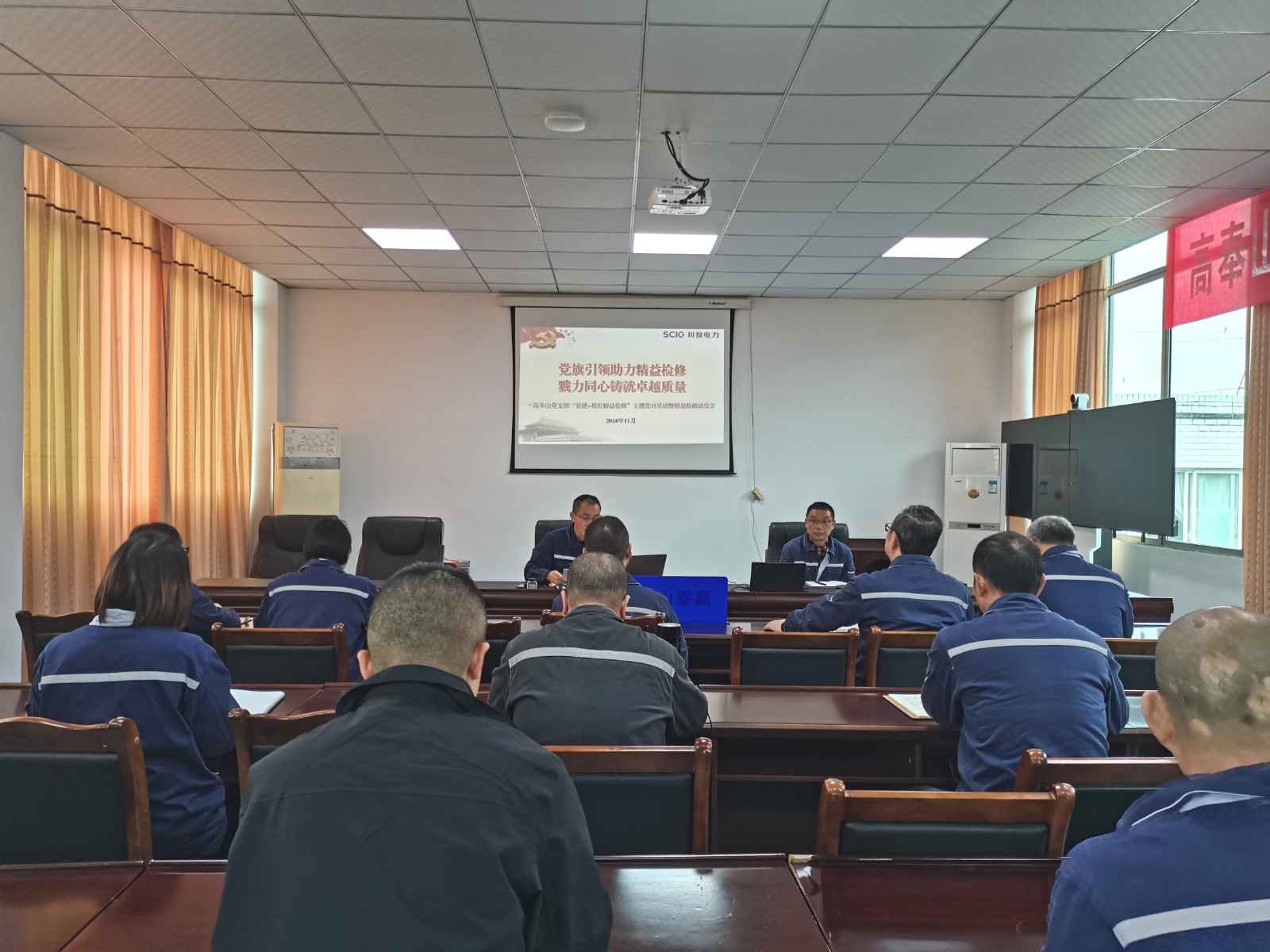 為確保檢修安全、提升檢修質(zhì)量、抓好檢修進度,近日,川投電力黨委高奉山黨支部將黨建融入重點工作,開展“黨建+精益檢修”主題黨日活動,拉開了“1+2+3+4”黨建引領融入檢修工作的序幕。高奉山黨支部書記、副廠長王橋主持會議并講話,支部黨員和員工代表參加。
