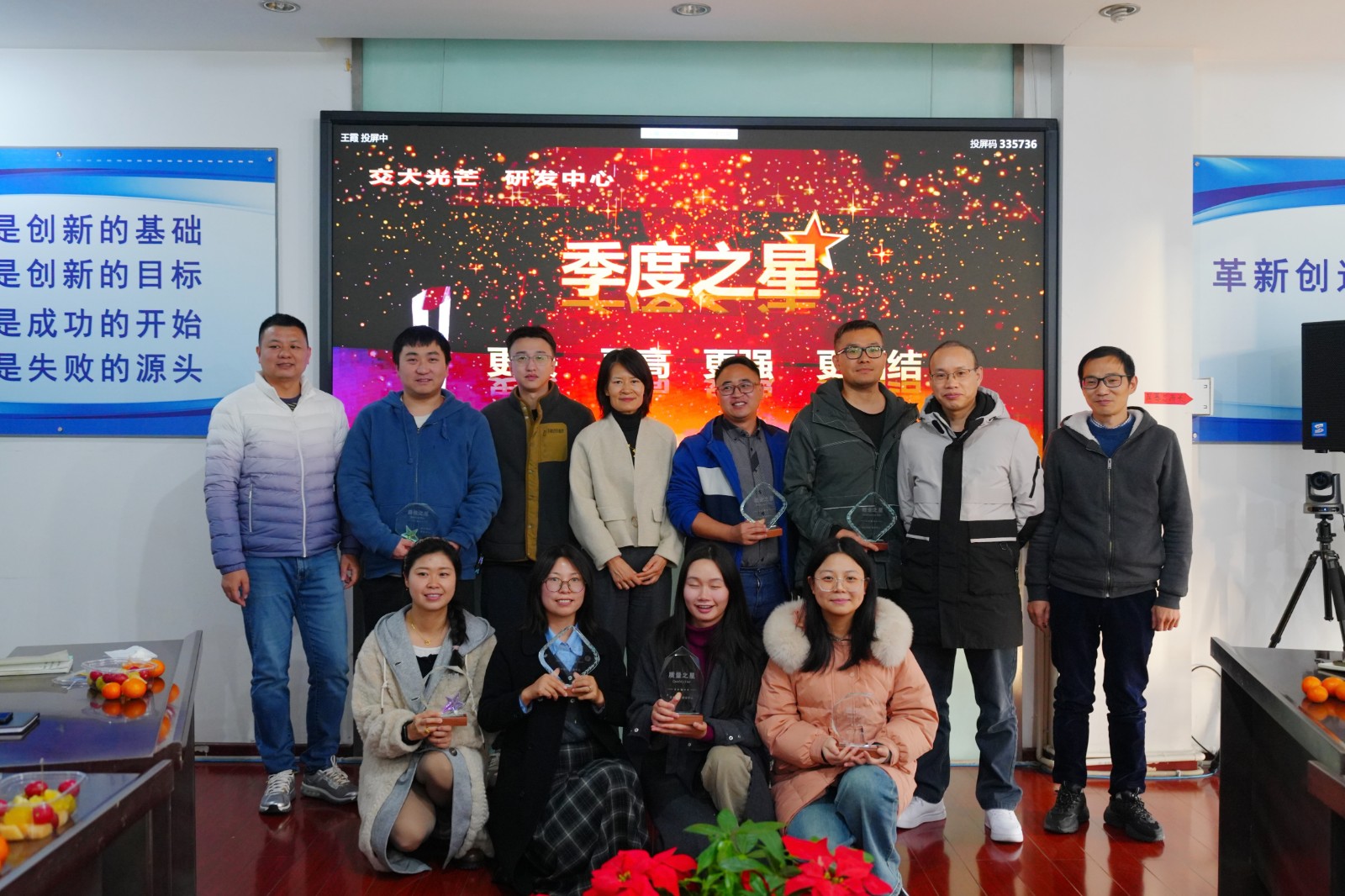 近日,交大光芒研發(fā)中心舉辦“季度之星”頒獎(jiǎng)儀式。頒獎(jiǎng)儀式由公司研發(fā)中心質(zhì)效部經(jīng)理羅靜主持,公司首席專家、副總經(jīng)理陳奇志出席并講話,公司研發(fā)中心核心骨干及獲獎(jiǎng)員工參加。