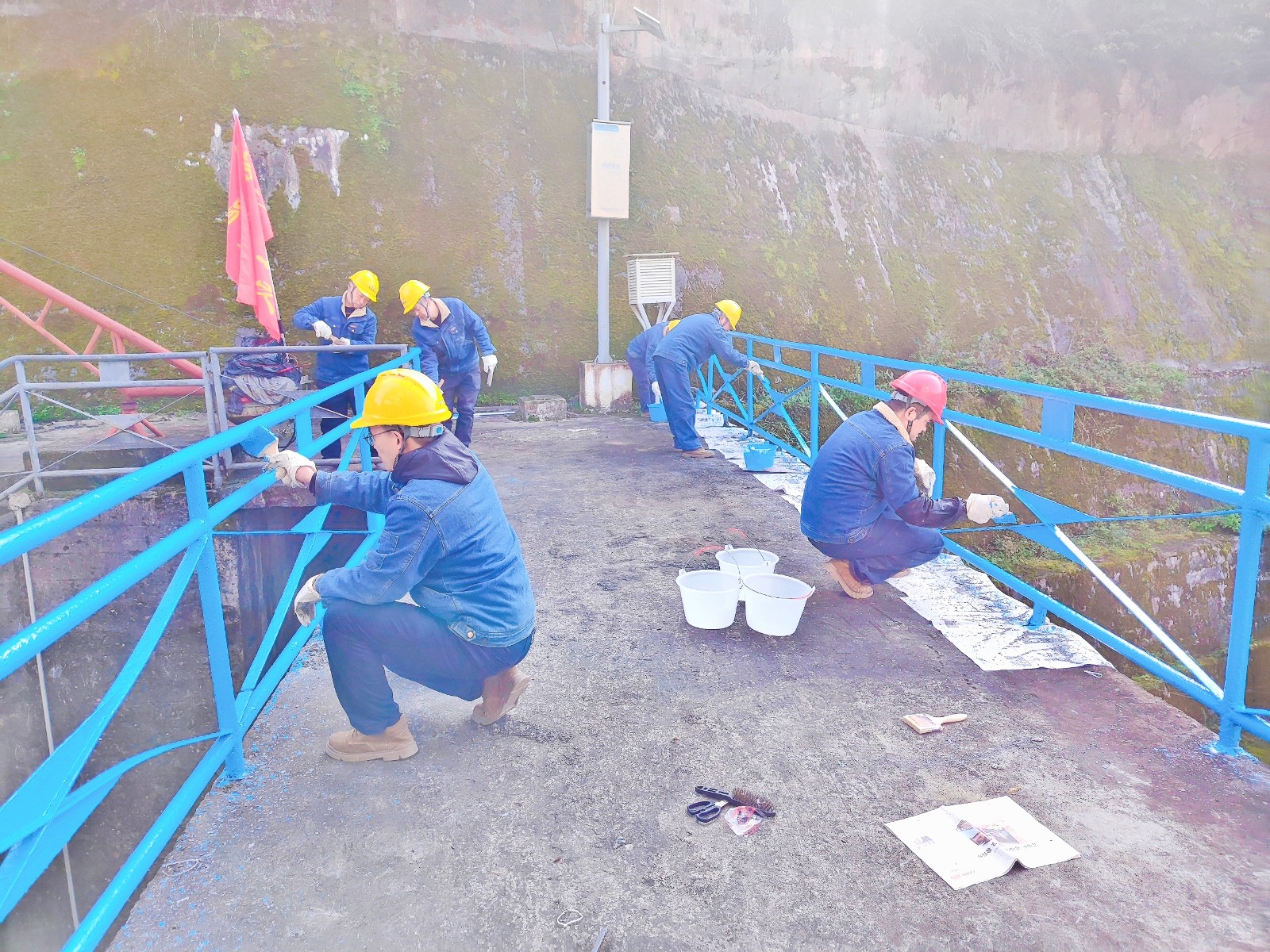 鳳鳴湖水庫(kù)是彭州市一級(jí)水源保護(hù)地。水庫(kù)大壩的護(hù)欄及金屬結(jié)構(gòu)長(zhǎng)期暴露于自然環(huán)境中,出現(xiàn)了不同程度的銹蝕脫漆現(xiàn)象,既影響大壩整體美觀(guān),又對(duì)運(yùn)行安全埋下隱患。為給大壩換上“新衣”,第三支部黨員擼起袖子迅速行動(dòng)起來(lái)。