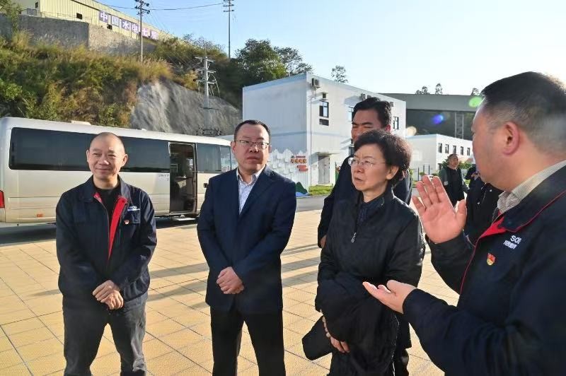 會(huì)后,陳嵐一行來到銀江水電站觀景平臺(tái),聽取了銀江水電站工程概況、工程建設(shè)進(jìn)度、勞動(dòng)用工等情況介紹。