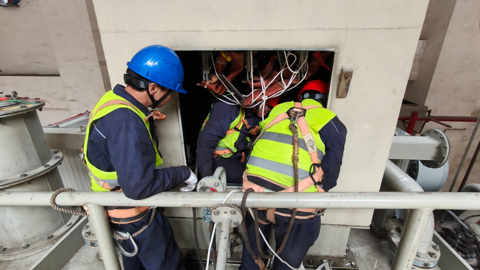 因上游電廠突發(fā)情況,導(dǎo)致本次停電時(shí)間延誤、有效作業(yè)時(shí)間縮短,本次檢修任務(wù)面臨嚴(yán)峻考驗(yàn)。3月13日,腳基坪電廠迅速組建了一支由6名技術(shù)骨干組成的黨員先鋒隊(duì)。在檢修工作中,充分發(fā)揮黨員的先鋒模范作用,以身作則,沖鋒在前,用實(shí)際行動(dòng)詮釋了黨員的責(zé)任與擔(dān)當(dāng)。主動(dòng)加班加點(diǎn),相互協(xié)作,密切配合,共同攻克了一個(gè)又一個(gè)技術(shù)難關(guān),確保了檢修工作的順利進(jìn)行。同時(shí),結(jié)合檢修現(xiàn)場(chǎng)實(shí)際情況,提出了一系列切實(shí)可行的優(yōu)化方案,有效提升了檢修效率和質(zhì)量。黨員先鋒隊(duì)隊(duì)員們精神抖擻,即便面對(duì)海量操作任務(wù),也絲毫不減嚴(yán)謹(jǐn)態(tài)度,共完成2項(xiàng)檢修項(xiàng)目、3項(xiàng)技術(shù)改造、全廠電氣設(shè)備預(yù)防性試驗(yàn)。