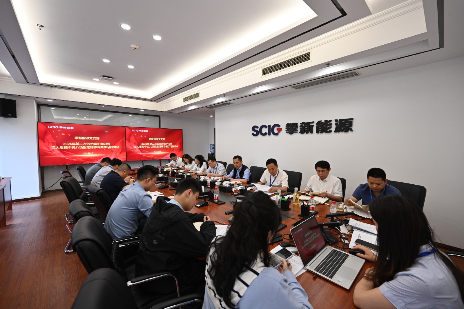 4月27日,攀新能源黨支部召開(kāi)2025年第二次政治理論學(xué)習(xí)(擴(kuò)大)會(huì)暨深入貫徹中央八項(xiàng)規(guī)定精神專題學(xué)習(xí)會(huì),黨支部書(shū)記、董事長(zhǎng)主持會(huì)議,領(lǐng)導(dǎo)班子成員及全體黨員參加。