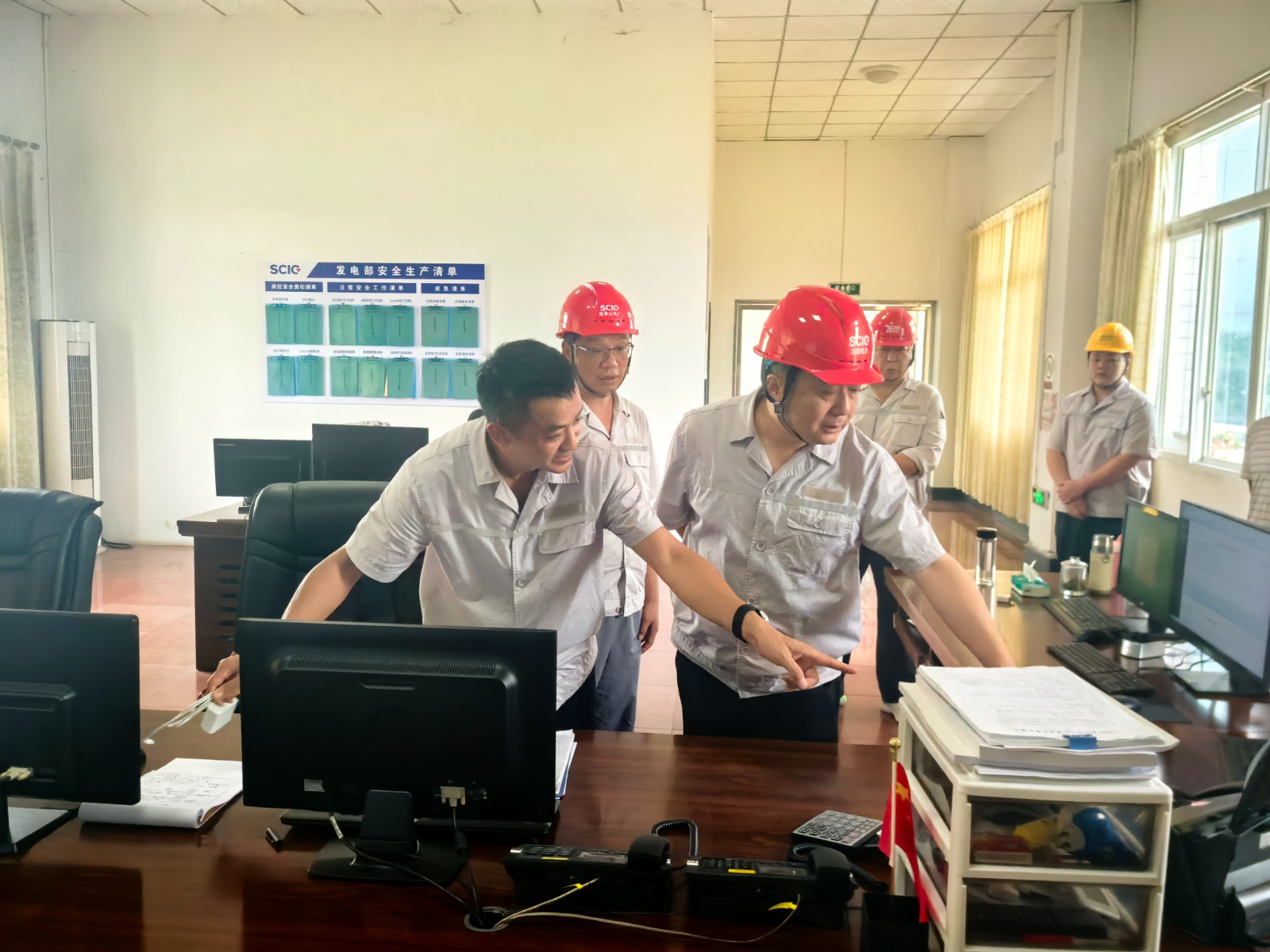 楊濤一行直奔生產(chǎn)現(xiàn)場(chǎng),實(shí)地查看了大壩樞紐、發(fā)電機(jī)組、中控室、防汛物資儲(chǔ)備點(diǎn)等關(guān)鍵區(qū)域,詳細(xì)詢問了當(dāng)前水庫(kù)水位、來水趨勢(shì)、設(shè)備運(yùn)行狀態(tài)及防汛應(yīng)急預(yù)案落實(shí)情況。在聽取電廠關(guān)于汛期安全工作的匯報(bào)后,楊濤對(duì)電廠前期防汛工作給予肯定,并就做好近期安全工作提出工作要求:一是強(qiáng)化責(zé)任落實(shí),嚴(yán)格執(zhí)行24小時(shí)防汛值班制度,確保各級(jí)責(zé)任人到崗到位。二是排查風(fēng)險(xiǎn)隱患,針對(duì)極端天氣可能引發(fā)的山洪、滑坡等風(fēng)險(xiǎn),開展拉網(wǎng)式排查,對(duì)發(fā)現(xiàn)的問題建立臺(tái)賬、限期整改,確保不留死角。三是完善應(yīng)急預(yù)案,加強(qiáng)實(shí)戰(zhàn)演練,確保應(yīng)急響應(yīng)迅速有效,保障電站及下游群眾安全。四是統(tǒng)籌發(fā)電與防汛,科學(xué)調(diào)度水庫(kù)庫(kù)容,平衡發(fā)電效益與防洪安全。