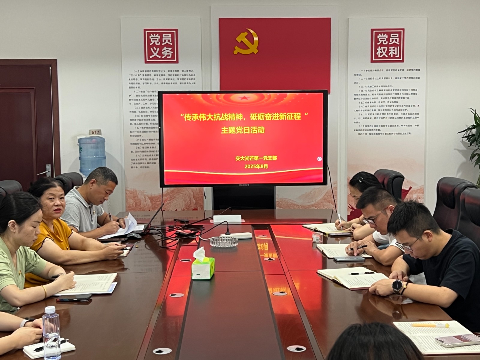 全體黨員一同觀看抗戰(zhàn)公開課《偉大的抗戰(zhàn)精神永不磨滅》。黨員們紛紛表示,要將抗戰(zhàn)精神中蘊(yùn)含的愛國主義、團(tuán)結(jié)奮斗、不畏艱險(xiǎn)等紅色品質(zhì)融入日常工作,以更堅(jiān)定的信念、更務(wù)實(shí)的作風(fēng)應(yīng)對挑戰(zhàn),為黨和人民的事業(yè)貢獻(xiàn)光熱。