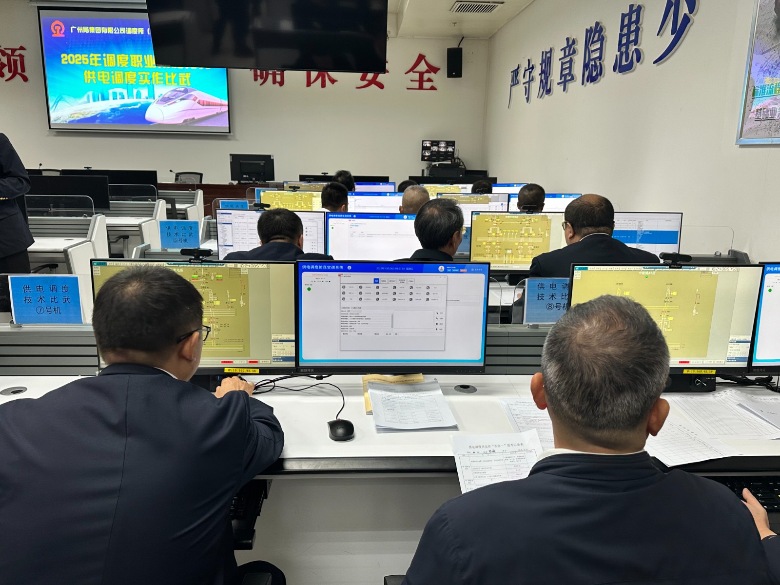 廣州局本次供電調(diào)度技術(shù)比武采用交大光芒自主研發(fā)的鐵路供電調(diào)度仿真培訓(xùn)系統(tǒng)。該系統(tǒng)按照真實(shí)的鐵路供電調(diào)度SCADA系統(tǒng)的架構(gòu)和功能進(jìn)行模擬仿真,1:1復(fù)刻SCADA系統(tǒng)主站與被控站的全流程架構(gòu)、操作邏輯及核心功能,不僅能精準(zhǔn)復(fù)現(xiàn)日常運(yùn)維工況場景,更可復(fù)原重現(xiàn)各類故障應(yīng)急狀況,為調(diào)度人員技能訓(xùn)練和技能考核提供“沉浸式”實(shí)戰(zhàn)場景和真實(shí)的操作平臺(tái),相比傳統(tǒng)培訓(xùn)和考核模式,該系統(tǒng)有效填補(bǔ)“高風(fēng)險(xiǎn)場景難模擬、實(shí)戰(zhàn)能力難檢驗(yàn)”的痛點(diǎn),助力參訓(xùn)人員零風(fēng)險(xiǎn)、低成本地反復(fù)“實(shí)戰(zhàn)”“比拼”,提升規(guī)范操作、應(yīng)急處置、故障排查專業(yè)能力,檢驗(yàn)專業(yè)技能水平和應(yīng)急處置能力。
