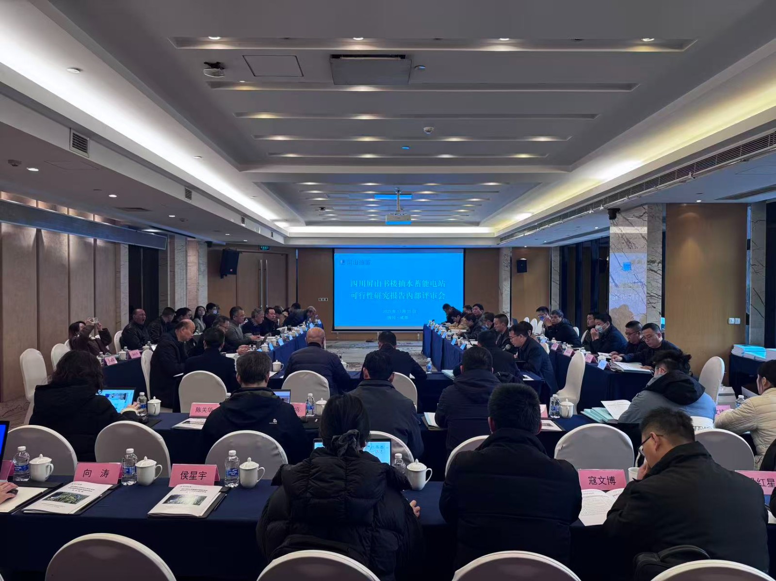 12月24日至25日,《四川屏山書樓抽水蓄能電站可行性研究報告》內(nèi)部評審會在成都召開,會議由屏山抽蓄公司總經(jīng)理蘇鵬主持,川投能源副總經(jīng)理、屏山抽蓄公司董事長王行仁,特邀評審專家,以及四川能源發(fā)展集團、川投能源、屏山抽蓄公司、攀新能源公司、中國電建成都院等相關(guān)人員參加會議。