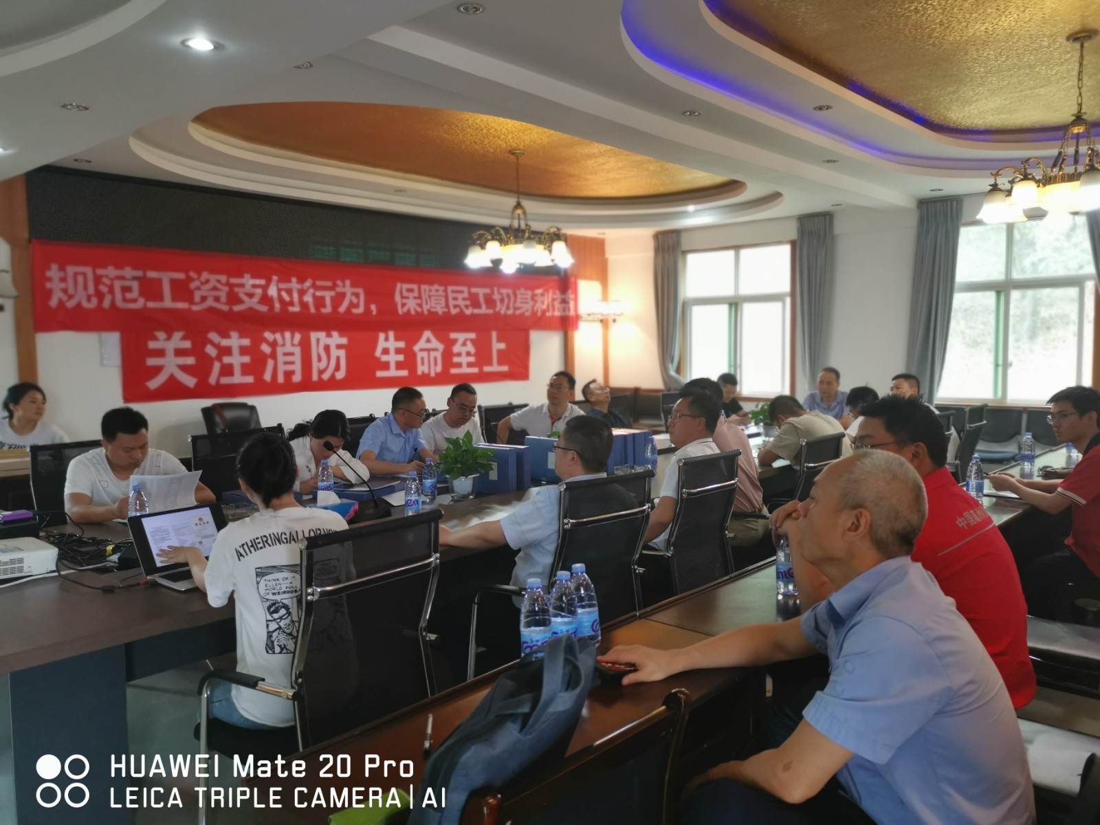 會議首先由攀水電公司計(jì)劃合同部經(jīng)理張興文匯報銀江水電站工程基本情況,葛洲壩路橋項(xiàng)目部副經(jīng)理周長渝匯報銀江水電站右岸壩頂以上邊坡開挖支護(hù)工程基本情況,重點(diǎn)介紹了本項(xiàng)目農(nóng)民工實(shí)名制、工資支付方式、周期及支付總額等,并向檢查組展示了相關(guān)憑證材料。核查組成員在資料核查過程中,就葛洲壩路橋項(xiàng)目部提供的農(nóng)民工工資支付相關(guān)資料提出詢問,張興文、周長渝等人逐一進(jìn)行了解答。