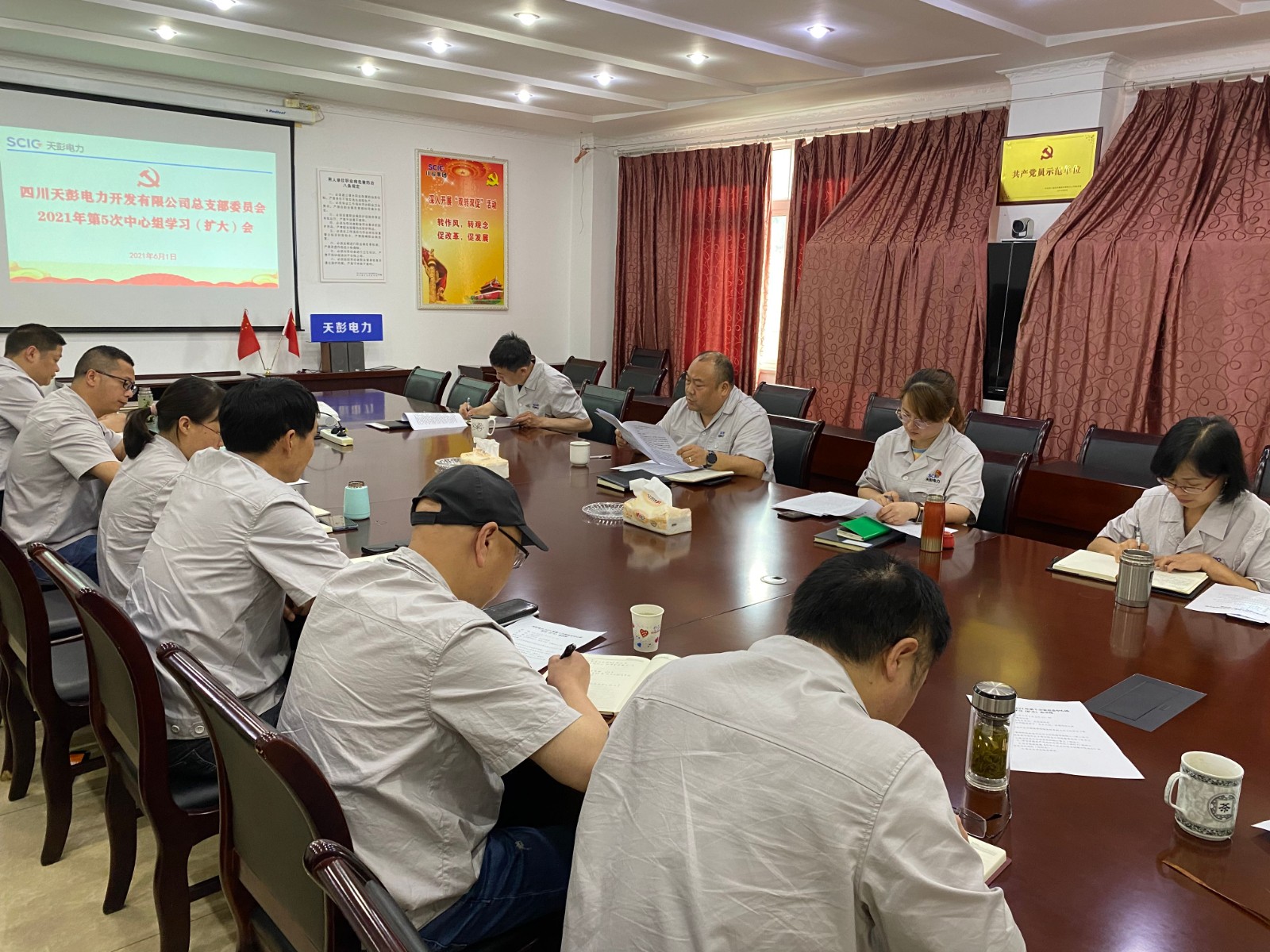 6月1日上午,川投能源天彭電力黨總支在公司二樓會議室召開2021年第5次中心組學(xué)習(xí)(擴(kuò)大)會,公司領(lǐng)導(dǎo)、黨員干部、關(guān)鍵崗位人員參加會議,會議由黨總支書記、總經(jīng)理陳忠主持。