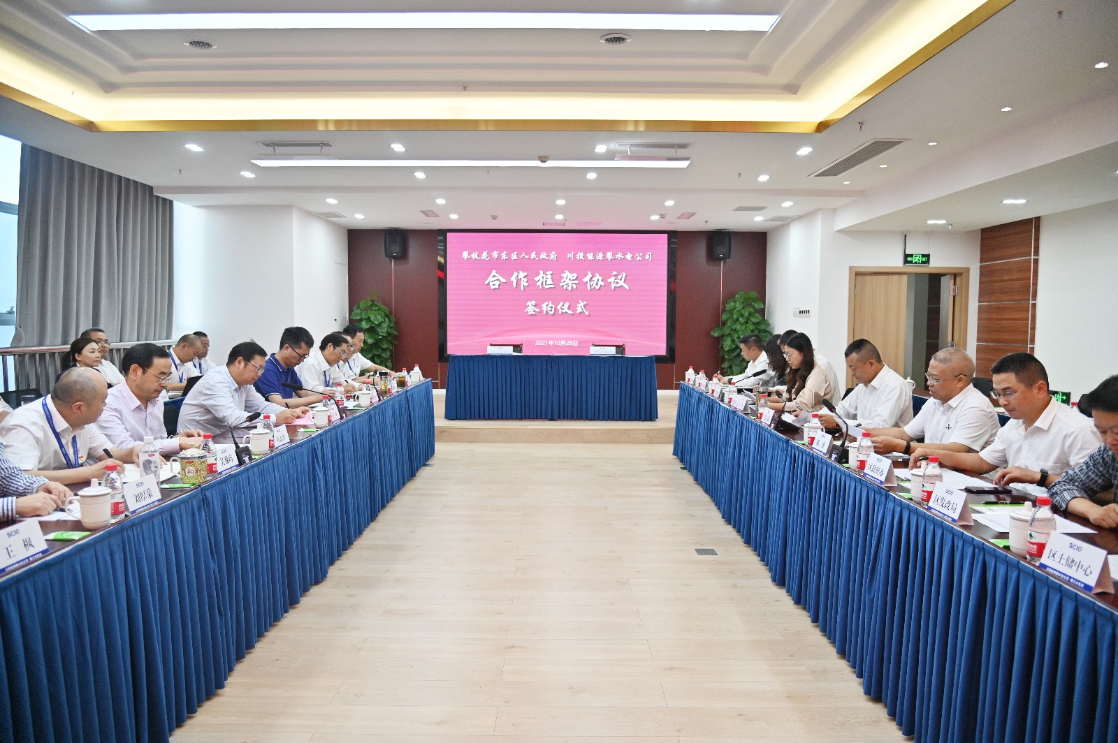 攀枝花市東區(qū)區(qū)級(jí)相關(guān)部門、銀江鎮(zhèn)主要負(fù)責(zé)人,川投集團(tuán)經(jīng)營(yíng)管理部劉厚榮、王楓,攀水電公司領(lǐng)導(dǎo)班子、各部門負(fù)責(zé)人參加簽約儀式。