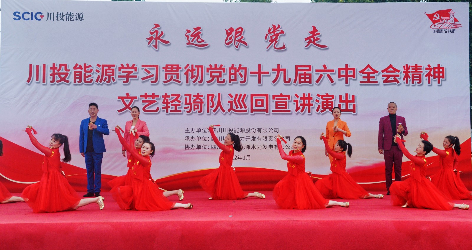 川投電力黨委書記、董事長楊濤及部分領導班子成員出席活動。槽漁灘公司、高奉山、百花灘電廠干部職工觀看了巡回宣講演出。