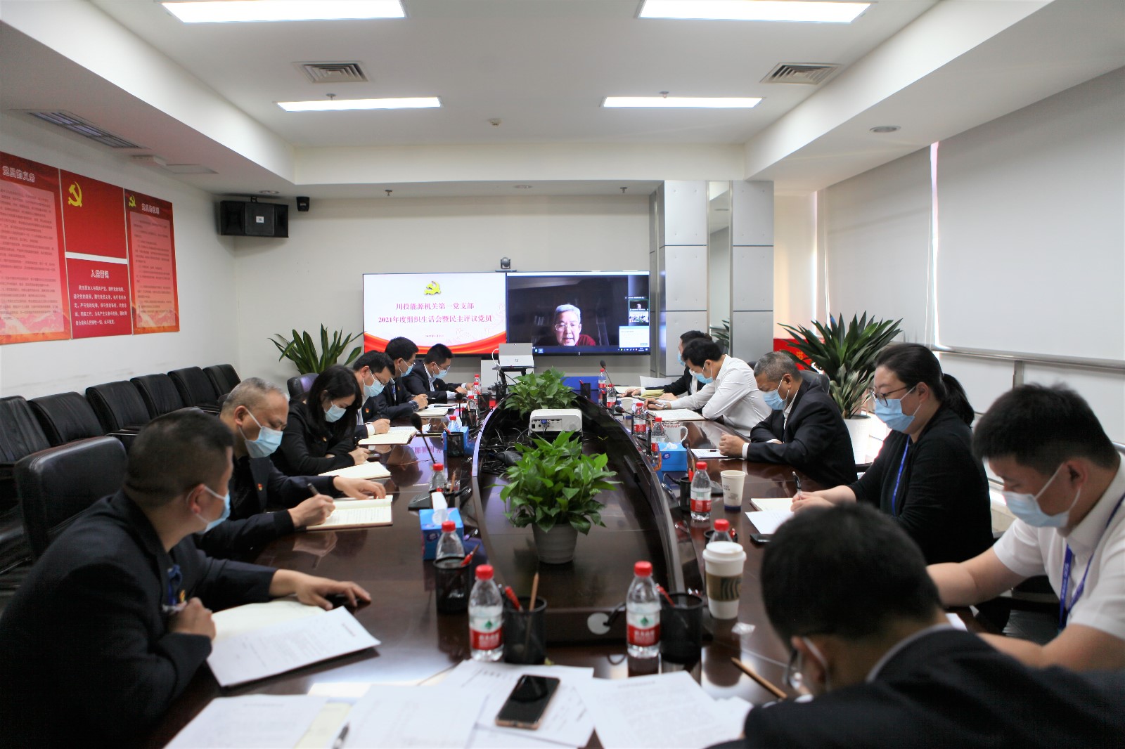 4月21日,川投能源機關第一黨支部召開2021年度組織生活會并認真開展民主評議黨員工作。公司黨委書記、副董事長、總經理楊洪,副總經理熊宇,董事會秘書魯晉川按照“雙重組織生活”要求,以普通黨員身份參加會議,公司黨委委員、紀委書記戴月洪作為督導組組長列席會議。