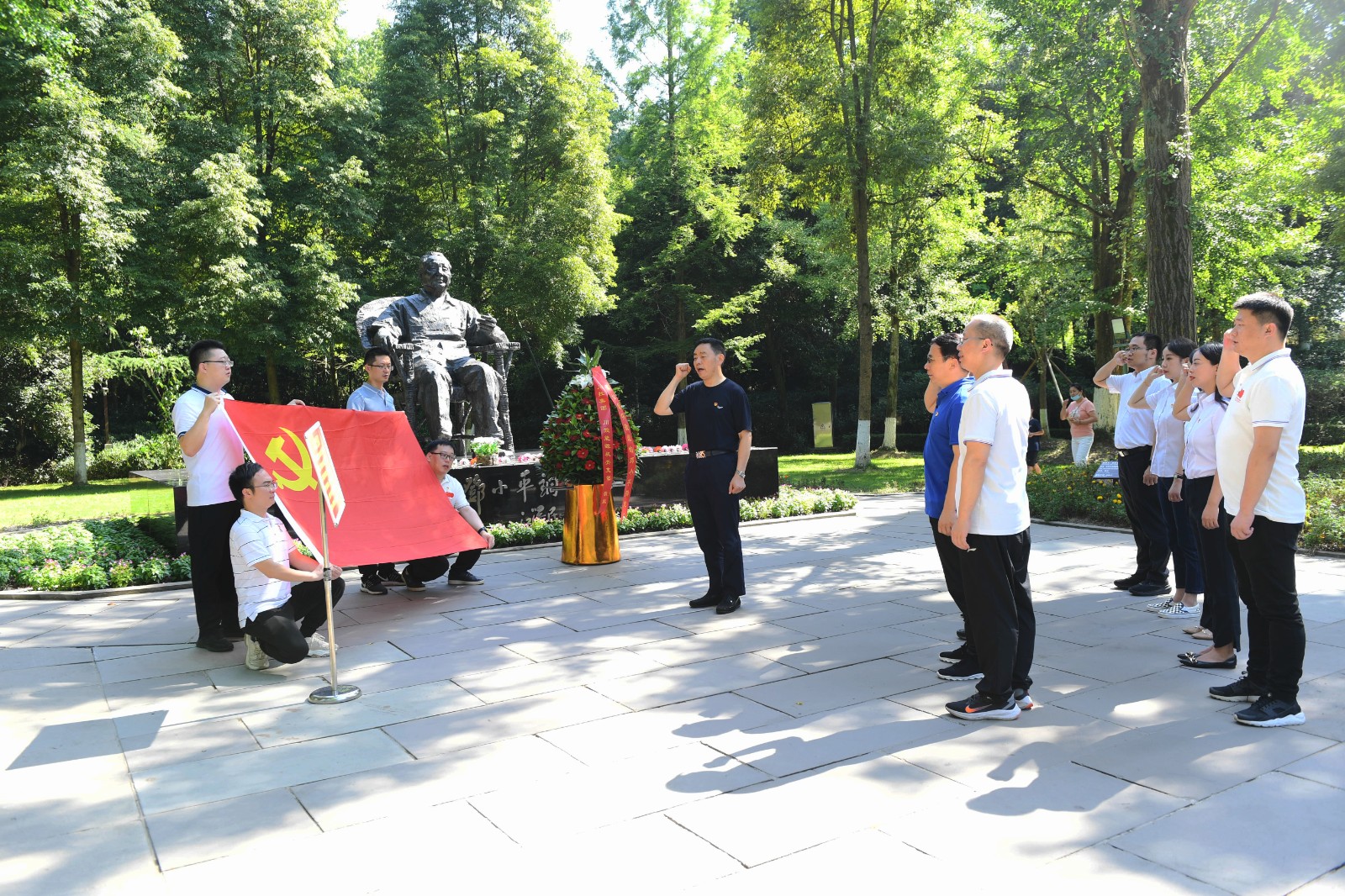 在鄧小平故里,全體黨員在鄧小平銅像前深深三鞠躬,敬獻花籃,表達了對一代偉人的深切緬懷和無限敬仰之情。仰望偉人銅像,面向鮮紅黨旗,全體黨員整齊列隊,在鄧凱同志帶領(lǐng)下重溫入黨誓詞,莊嚴(yán)宣誓:“我志愿加入中國共產(chǎn)黨,擁護黨的綱領(lǐng),遵守黨的章程,履行黨員義務(wù)……”隨后大家走進鄧小平故居陳列館、鄧小平緬懷館、鄧小平故居等地參觀學(xué)習(xí)。觀看文獻紀(jì)錄片《小平你好》、現(xiàn)場接受黨性教育主題宣講教學(xué),全體黨員深入了解了鄧小平同志波瀾壯闊的人生歷程,切身感受了偉人敢為人先的膽識和氣魄,深刻體會了改革開放的巨大變化和不朽功績。
