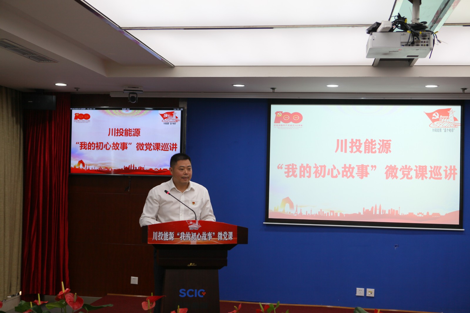 5月28日上午,川投能源“我的初心故事”微黨課巡講活動(dòng)最后一站來(lái)到601會(huì)議室,為公司本部全體黨員職工帶來(lái)一場(chǎng)別開(kāi)生面的黨課教育。活動(dòng)以視頻方式連線公司所屬各單位分會(huì)場(chǎng)。集團(tuán)公司黨群工作部部長(zhǎng)張碧波,公司黨委書(shū)記、副董事長(zhǎng)、總經(jīng)理?xiàng)詈榧霸诩翌I(lǐng)導(dǎo)班子成員,本部及所屬各單位黨員職工共計(jì)200余人聆聽(tīng)黨課巡講。